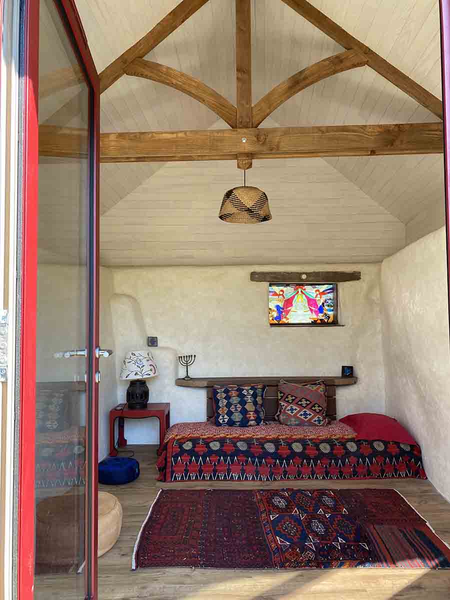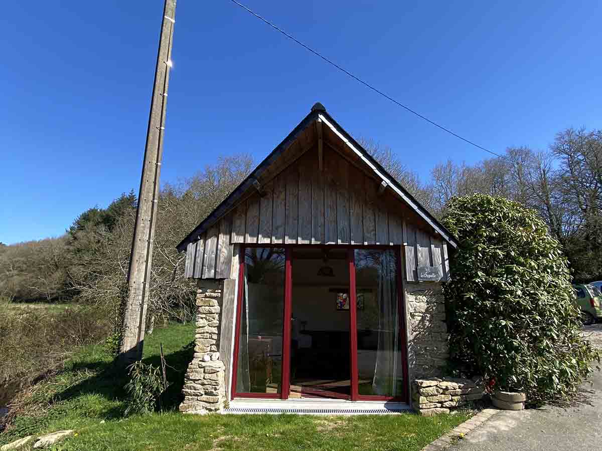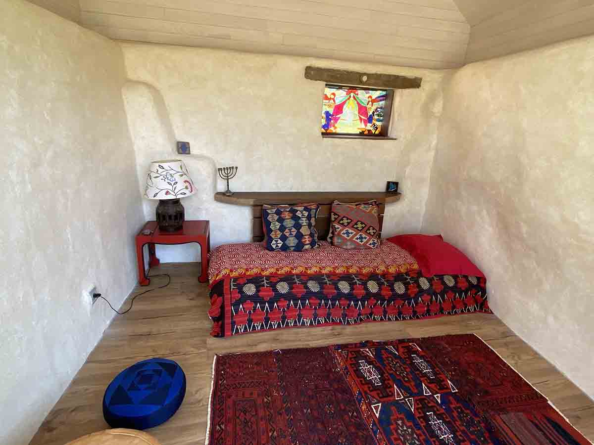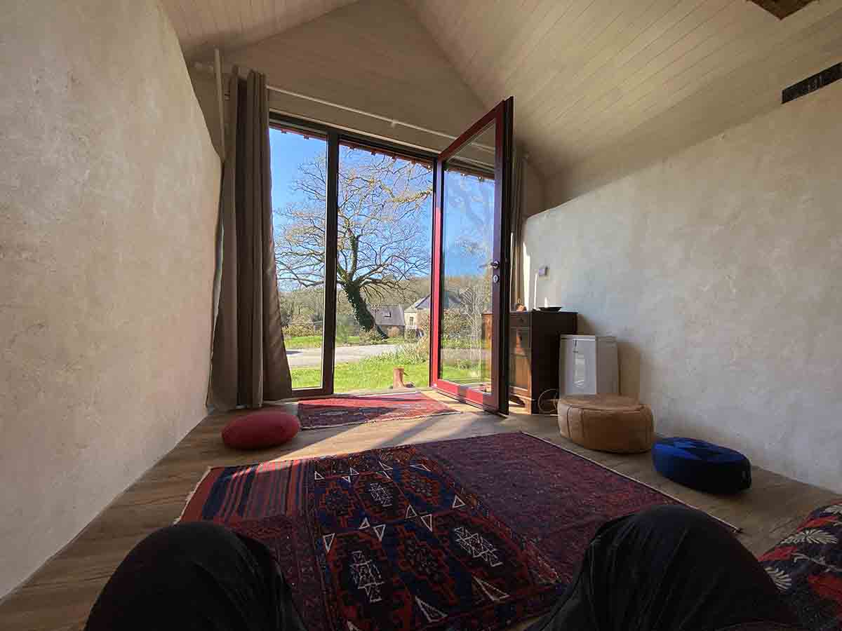 Dans une petite maison à part. Chambre pour 1 personne (1 lit simple). Sdb partagée dans la maison. Toilettes sèches proches.